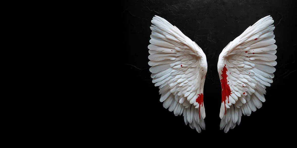 Care quickly turns to control. The couple seize the opportunity to exploit the spiritual beings in pursuit of fame and fortune. Brutally clipping the angels’ wings to exploit this heavenly gift, the celestial beings are subjected to degrading, inhumane practices.